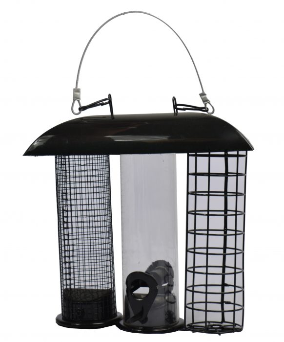 Een zwarte voedersilo voor in de tuin. Verwen de buitenvogels met zowel pinda’s, zaden als vetbollen. Voor elk wat wils!
