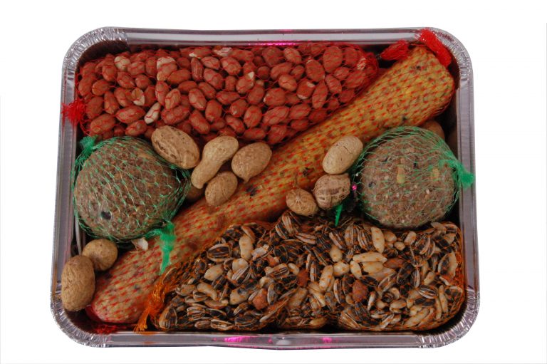 Een feestpakket voor alle buitenvogels met mezenbollen, doppinda’s mixnetje, pindanetje en een vetstaaf. Per 7 schalen verpakt.